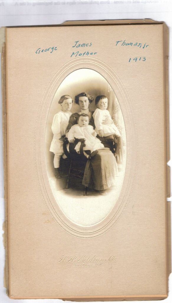 Description: Cecelia O'Connor Llewellyn, wife of Thomas Sylvester Llewellyn, Sr., with her three sons: to her right George Llewellyn, II; to her left Thomas Sylvester Llewellyn, Jr; on lap James O'Connor Llewellyn (later Father Anselm Llewellyn, OSB).