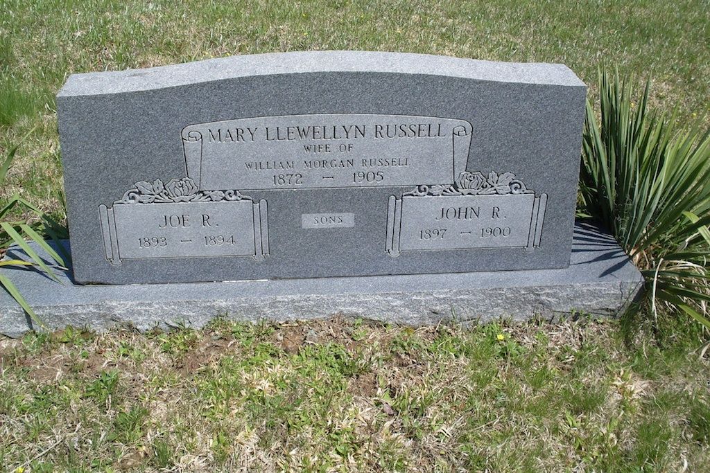 Also, in 1881 James F. Lewallen married Mary Russell. This marker shows Mary Llewellyn to have married William Morgan Russell 1872 so it would have been before James married Mary Russell. Could James F. Lewallen have been Mary's brother?