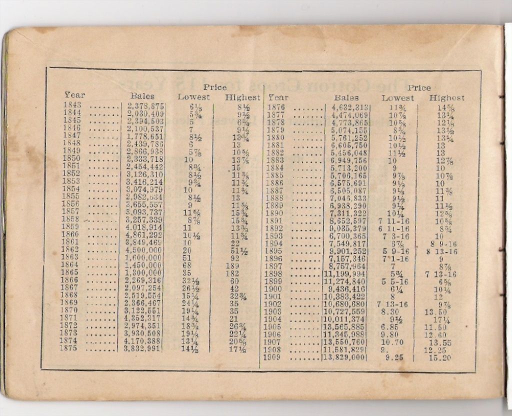 Description: Cotton crops from 1843 to 1909 page 2. Click to enlarge
