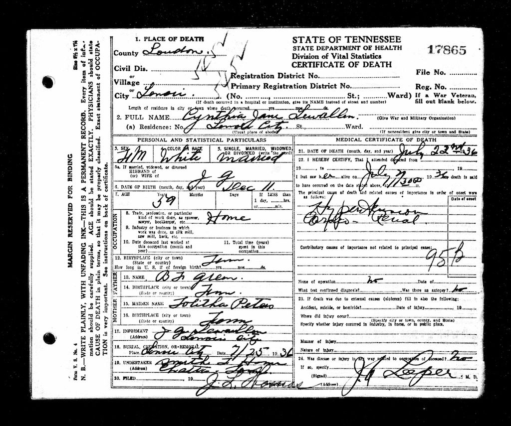 Cynthia Jane Greer Lewallen (Wife of John Granville Lewallen)