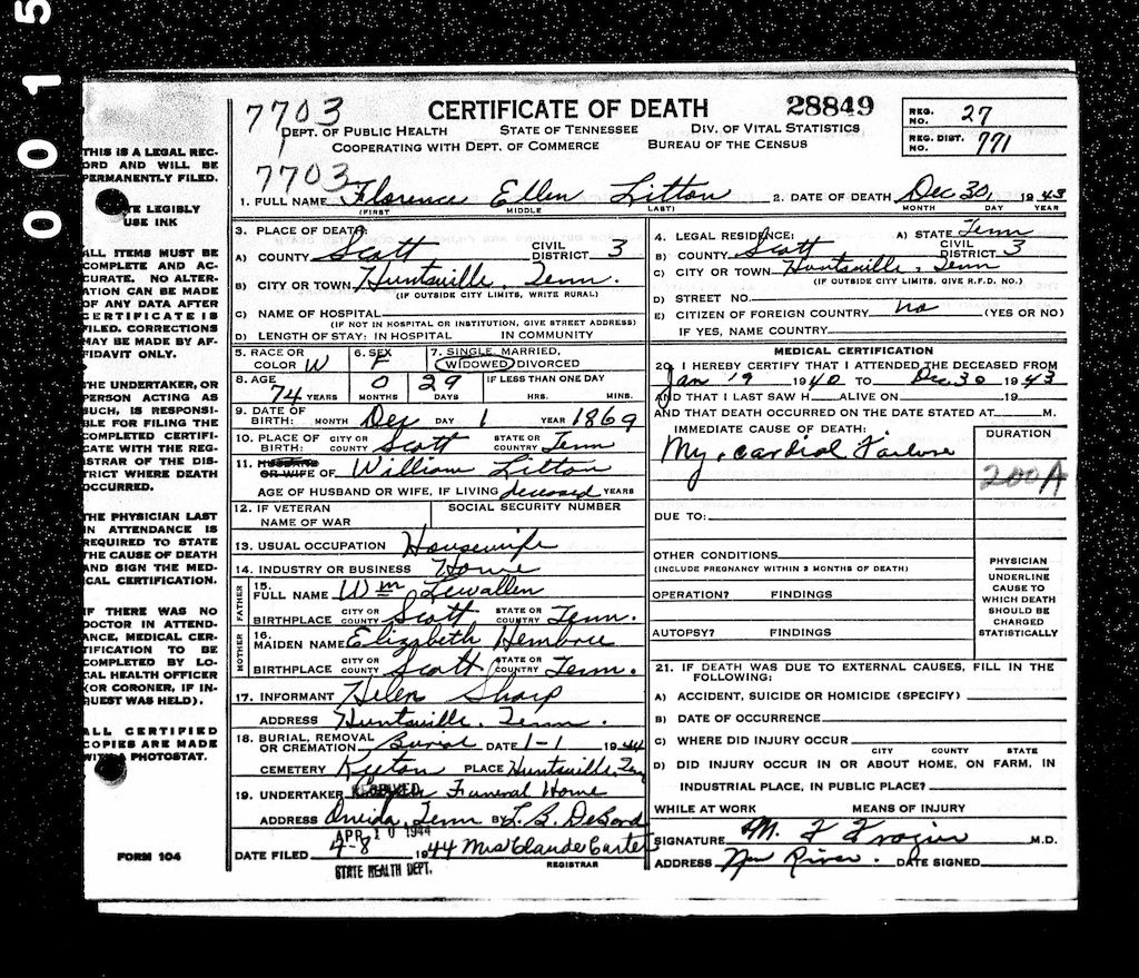 Description: Parents were William Lewallen and Elizabeth Hembree Lewallen.