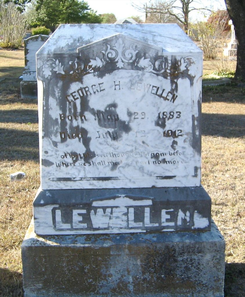 This is my great grandfather. George Henry Lewellen died at the age of 29 from a heart attack. In 1907 he married Thurza Engleton Lovelace.