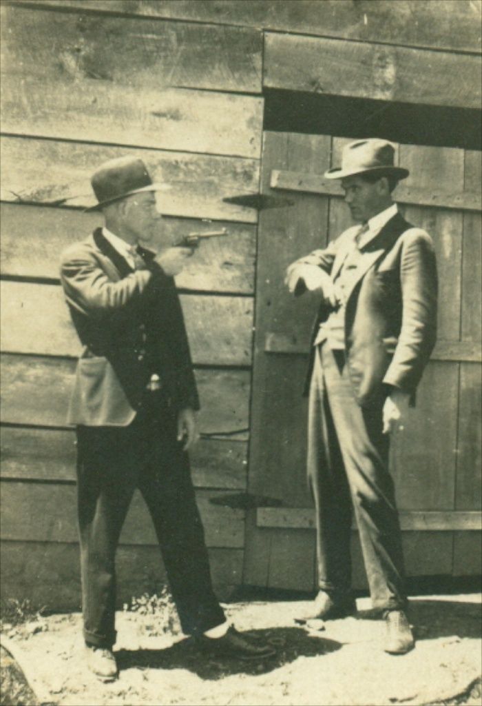 Found it to be an interesting photo with the gun. A lot of old photos show guns in them, guess no gun control problems then.
