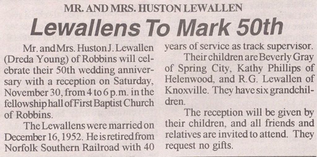 Houston and Dreda Lewallen at 50 Ann.