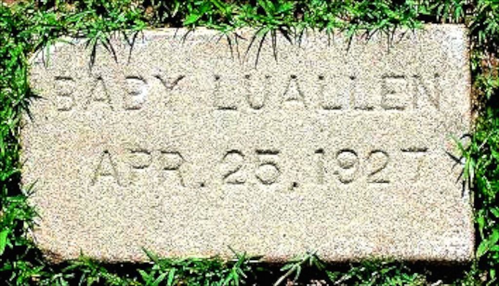 Baby Luallen is Junior Lee Luallen, the 7th of 8 children of my grandparents J. Walter & Susie Luallen. Junior was stillborn. See Luallen Family Tree on ancestry.com.