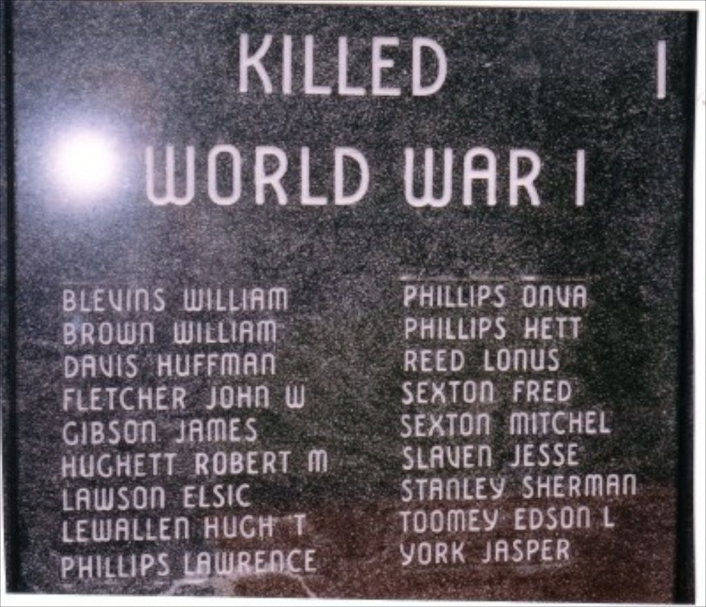 Hugh Lewallen's name on the V F W Wall Memorial in Oneida.