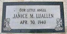 Janice was the infant daughter of Talmadge (Pete) and Geneva Luallen. She lived only a few hours. See Luallen Family Tree on ancestry.com.
