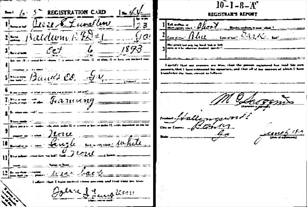 Description: World War I draft registration card for Jesse S Lewallen b. 1893