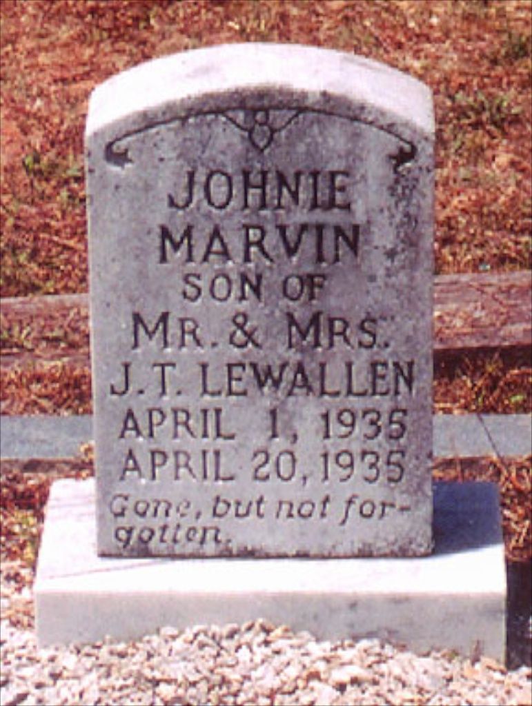Description: I believe this tombstone is for the child of John Tatum Lewallen but I am not sure.