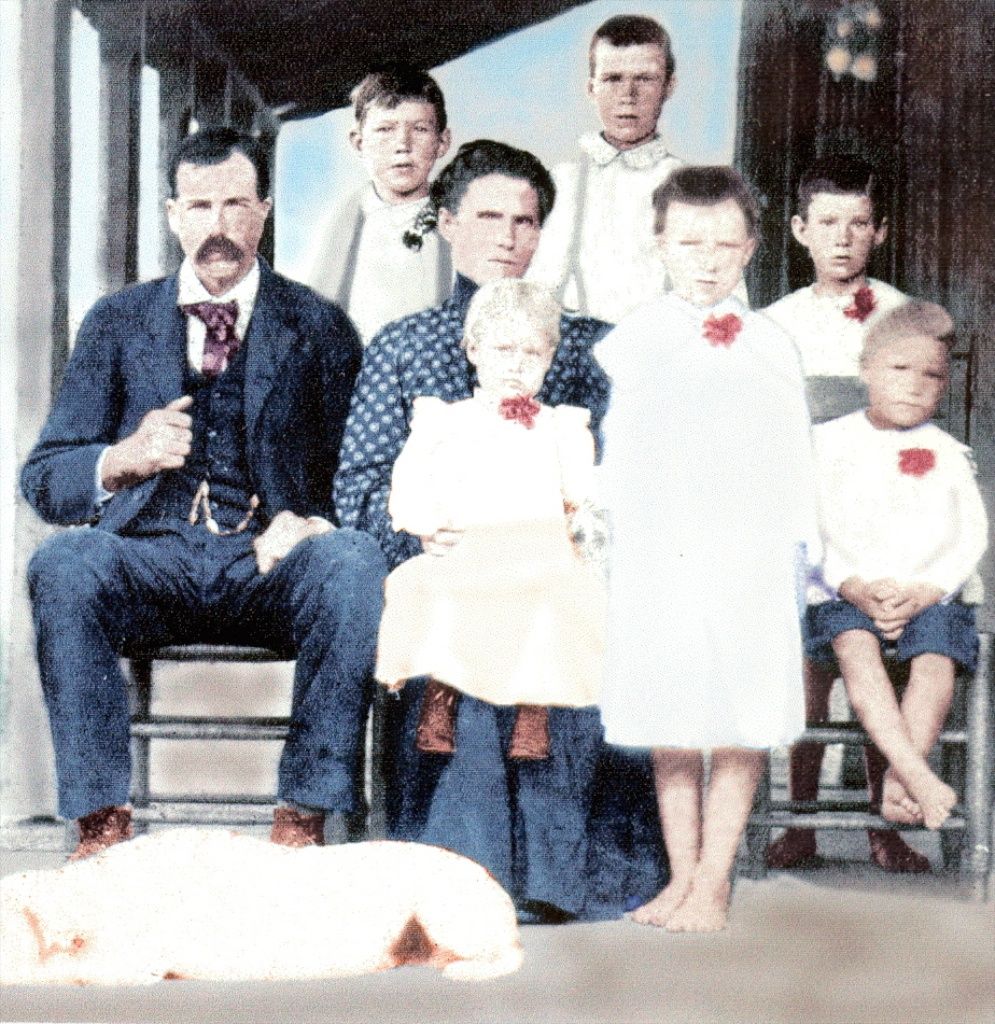 Description: I KNOW THIS PHOTO IS POSTED IN BLACK AND WHITE BUT WANTED TO POST THE COLORIZED ONE. THIS IS THEIR FIRST 6 CHILDREN, THYE HAD 3 MORE.