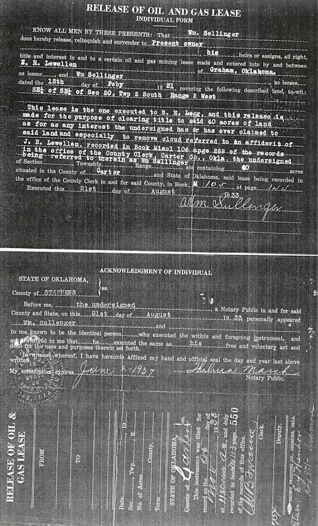 Description: John Riley Lewellen's home place papers found at Ada, Carter County Court House, OK