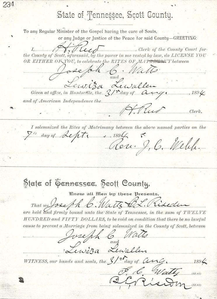 Joseph Campbell Watts & Lewiza (Louisa) Lewallen