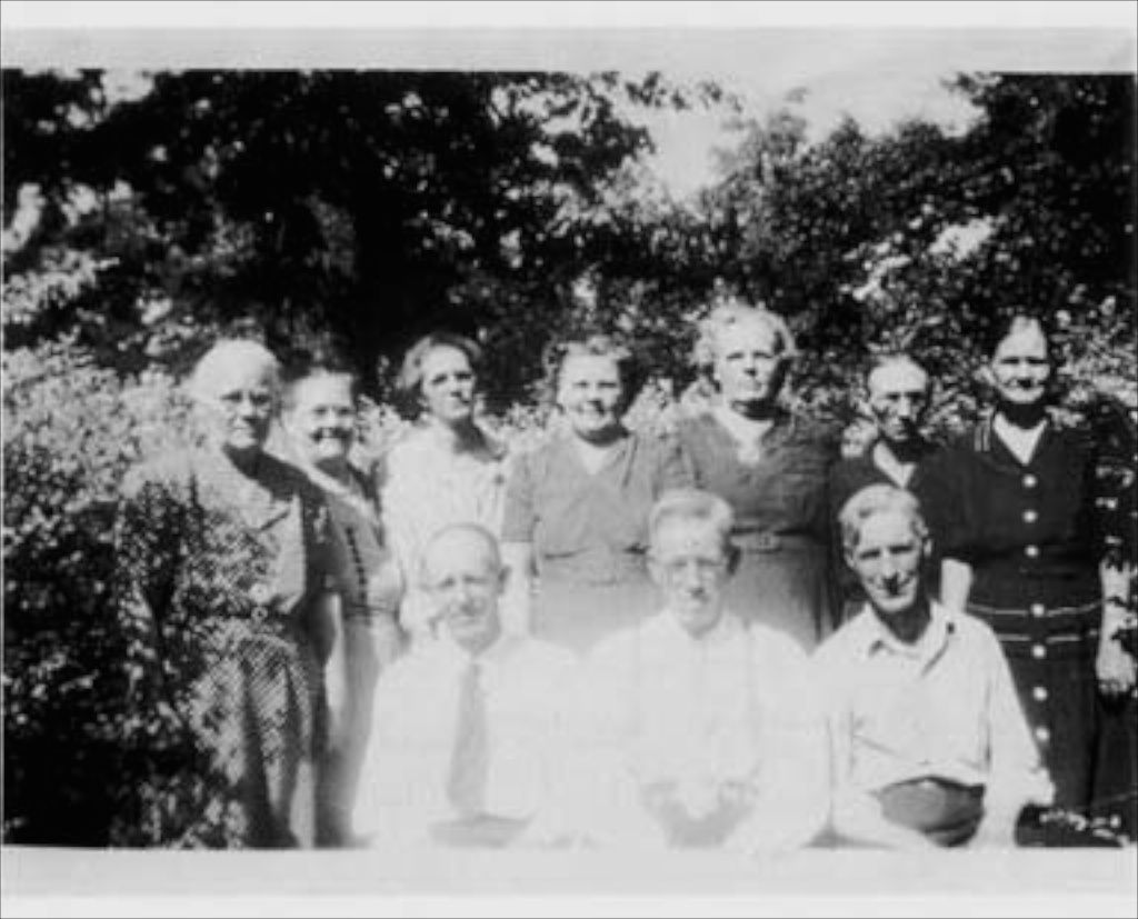 Description: Back Row:L-R: Vassie Lewallen Gordon, Virgie Lewallen Banks, Lizie Gober Lewallen, Elsie ?(Melvin's daughter), Nora Bradford Lewallen, Lula Segars Lewallen, Pammie Lewallen Martin. Front Row:Jess Lewallen, Melvin Lewallen, Lauris Martin.