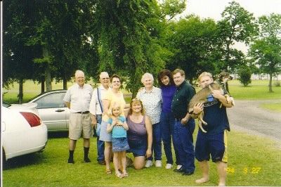 Description: L-R Jim Daylor, Hedrick Lewellen, Nancy Johnson Erickson, Claire, Diane Johnson Greer, Mary Harris Johnson, Carolyn Anderson Webb, Perry Webb, Jamie Greer