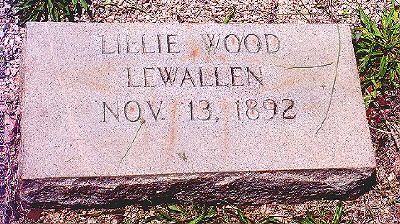 Description: Tombstone of Lillie (Wood) Lewallen 1892-1987, 2nd wife of Noah Lumpkin Lewallen. I doubt if she is actually buried here since her date of death was never added to the tombstone.