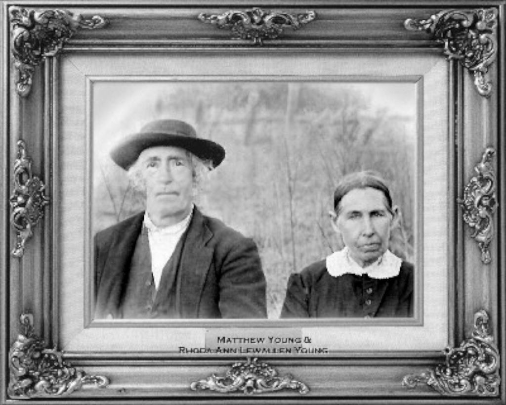 Matthew Young first married Elizabeth Lewallen Young, after she died, he married her younger sister Rhoda Ann Lewallen and they raised his first three daughters along with their family of ten children.