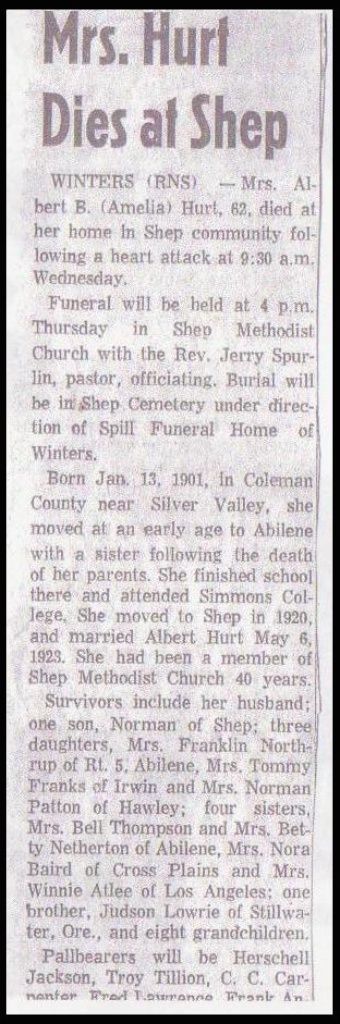 Obit for Ameila (Lowrie) Hurt