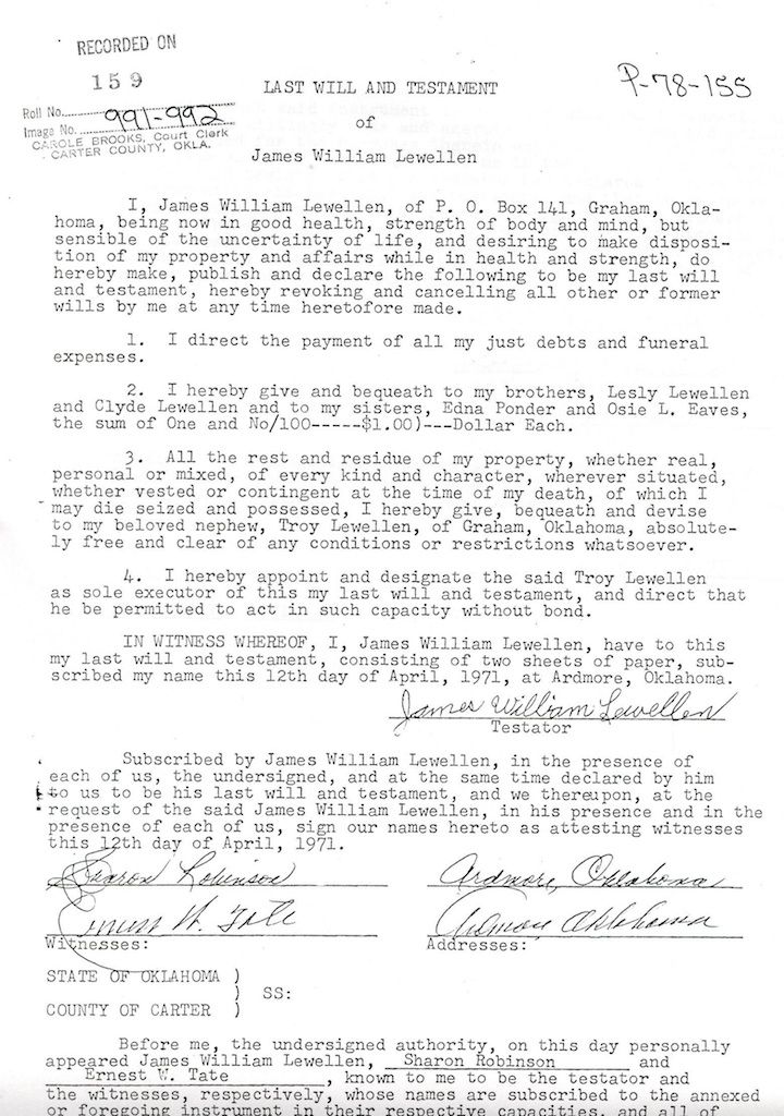 Description: William James Lewellen (uncle Bill) son of John Riley and Bell Morris Lewellen