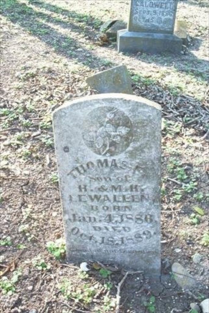 Description: Thomas Early Lewallen 1886-1889 s/o Harrison & Margaret Harriet (Keeney) Lewallen
