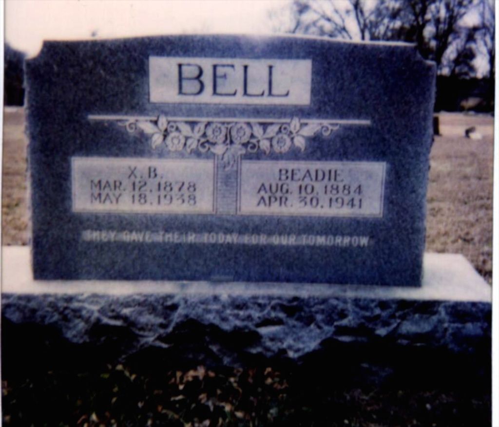 X.B. Bell Dec.14,1898. He died 05-18-1938. She was a member of the Christ
