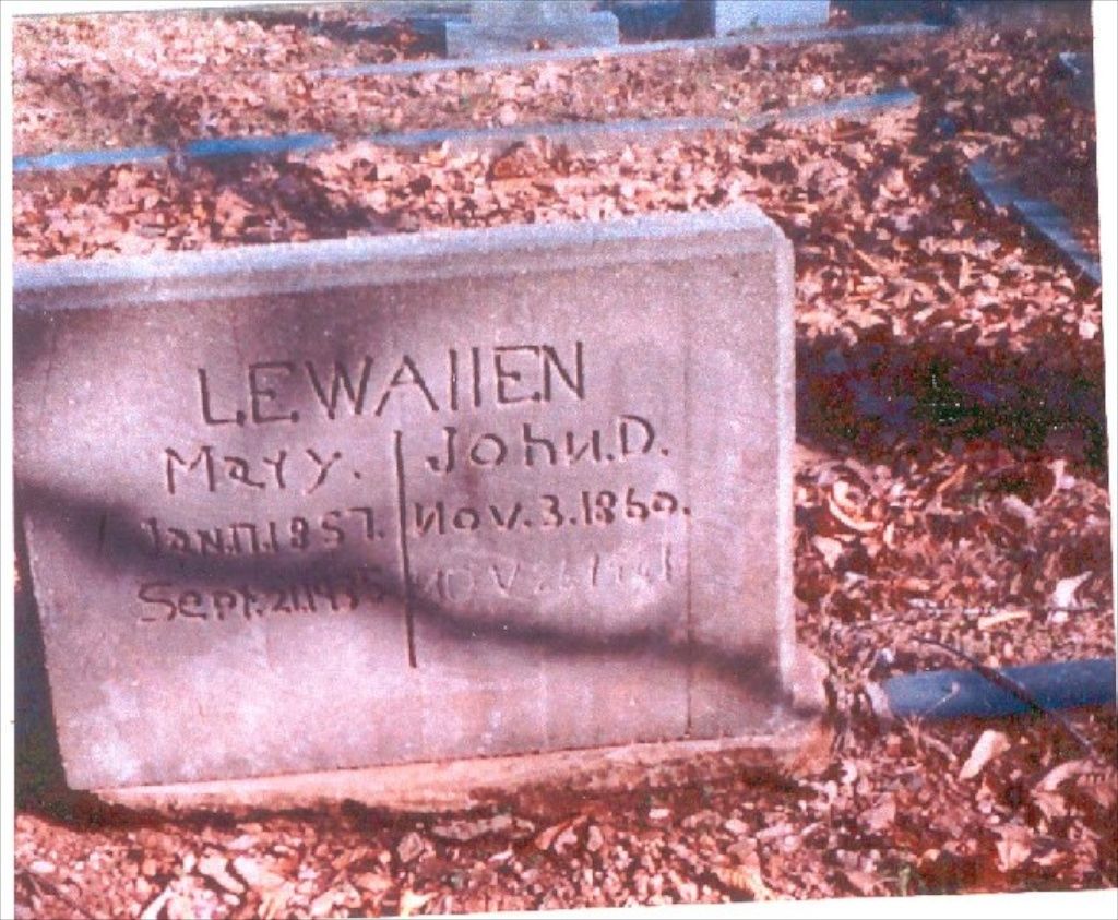 Description: Grave marker of John D. and Mary Lewallen. Buried at Webbs Creek Baptist Church cemetery in Banks Co. Ga.